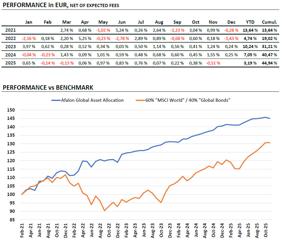 Afalon Global Asset Allocation -konsepti sijoittaa kaikkiin omaisuusluokkiin maailmanlaajuisesti ja tavoittelee 8 – 10% vuosituottoa yli suhdannesyklin. Riskiä lisätään, kun markkinassa on positiivinen trendi, ja laskusuhdanteessa pyritään pääoman turvaamiseen. Volatiliteettitavoite on 7 – 9 %.